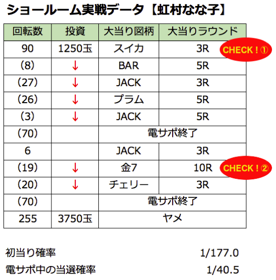 では早速、虹村なな子の実戦データから。