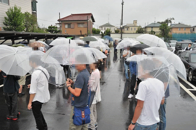 | 冷たい雨が降る中、今日の戦いに闘志を燃やす、300名以上のファンの行列! | |