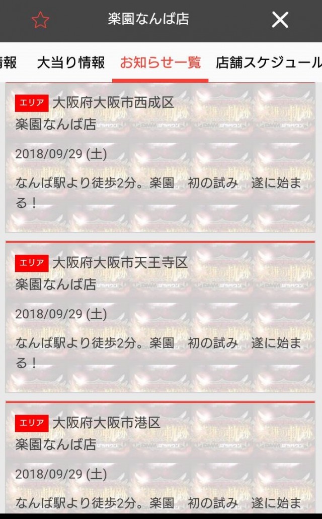 さて、早速「楽園 なんば店」さんのPUSH通知を見てみます!