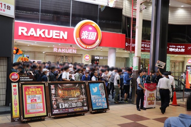 取材当日は台風が日本列島を縦断するとの予報でしたが、抽選開始の40分前には500人でパチスロは締め切り!