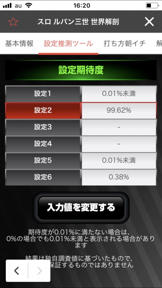 これらをぱちタウンが誇る設定推測ツールに入力してみると…、