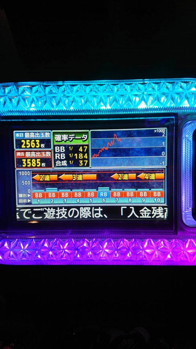スランプグラフは全台綺麗な右肩上がりでした。他の30パイも盛り上がっていましたが、この機種だけは常にぶん回し状態。