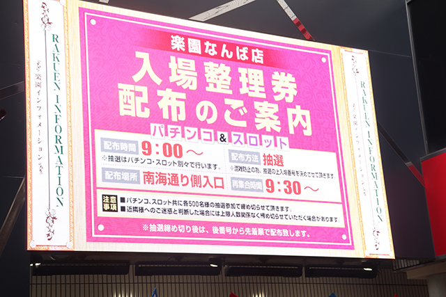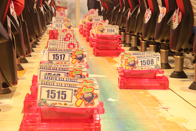 入場抽選開始となる午前9時を前に、スロットエリアの整理券は500人の定員に到達!その後も絶えず増えていくファン━━、その全てに対し、スタッフの心の込もったおもてなしは続く!