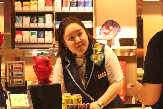 | パチンコ・パチスロの両ゲートの前で、総勢6名のぱちタウンエンジェルスがお出迎え。今日も1日、満点の笑顔でファンの背中を後押し! | |