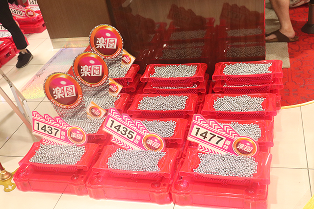 | 色とりどりの賞品コーナー。こちらで、お目当ての賞品を決めてから勝負に挑むのも一興! | |
