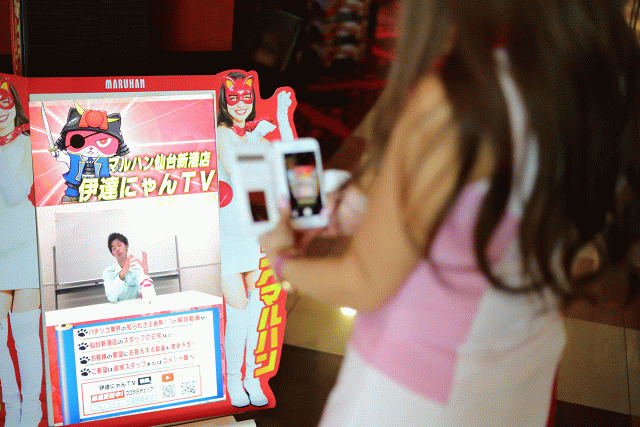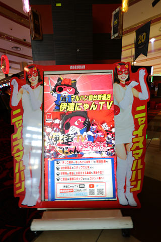 なんと、「マルハン新港店」オリジナルのyoutube番組『伊達にゃんTV』の紹介やムービーが放映されている!