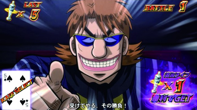 「ワンポーカーBATTLE」では毎G運ポイントの獲得抽選を行い、カイジ勝利で運ポイントとLIFEを獲得!