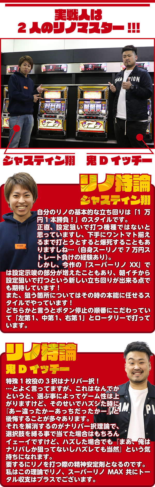 6号機の限界である一撃2400枚突破を目指し、『スーパーリノXX』の性能をあの2人が探って行くぞ。