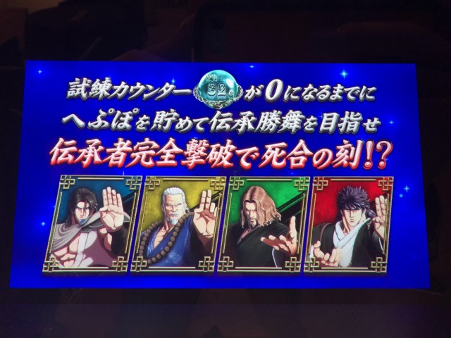 伝承試練中は小役によって「へぷポイント」を貯めていき、規定へぷぽ到達で「伝承勝舞」へと突入する。