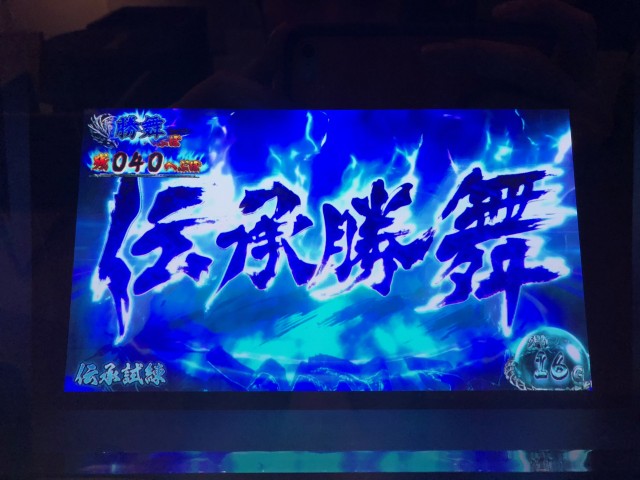 伝承勝舞は2G間でベルを引けばチャンス! レア役なら撃破濃厚となっており、伝承者撃破で次の対戦相手に移行し、全員撃破で死合の刻引き戻しとなる。