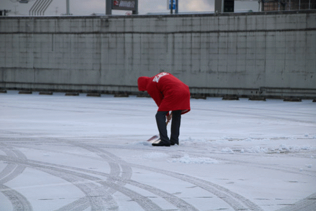 寒さの中、懸命に汗かき、雪かきを行うスタッフ
