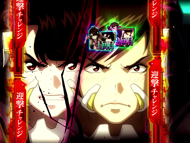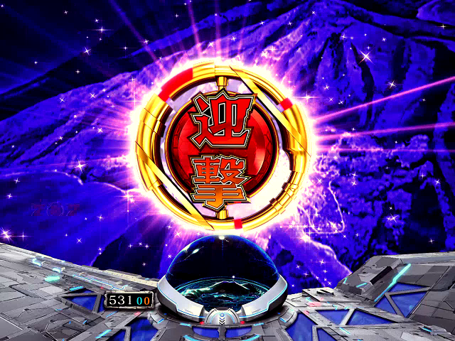 通常時に予告やリーチなどの演出を介して、迎撃図柄が停止すると小当り当選。大当りを役物で抽選する「迎撃チャレンジ」へと突入します。