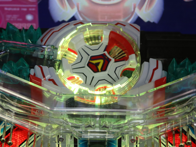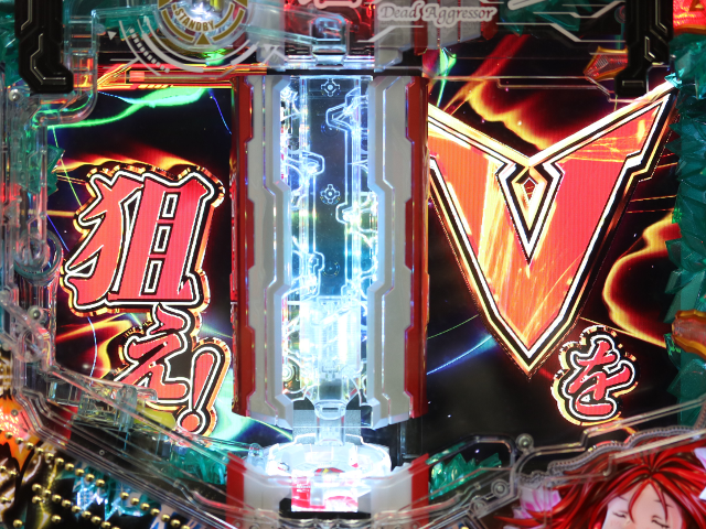援護演出が終わったら、いよいよ運命の時! 上部から射出される「勝負玉」がルガーランス役物を通って回転体へ落下、見事V穴に入賞すれば大当りです。
