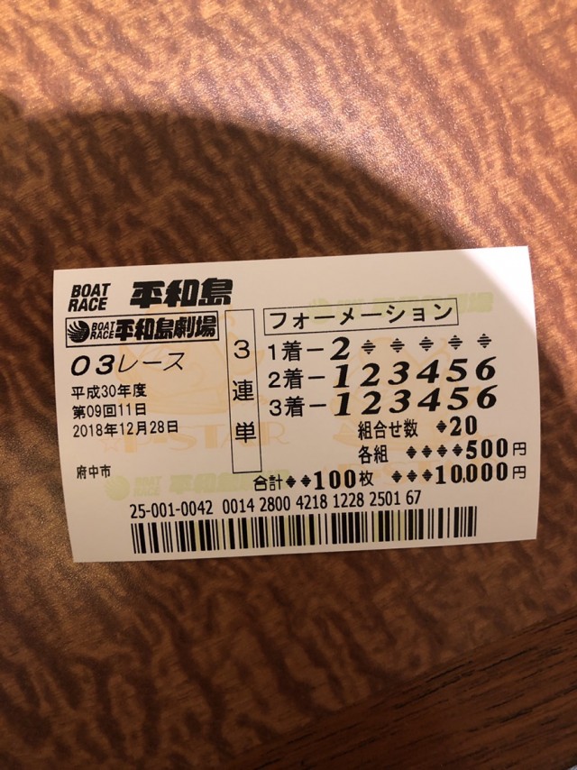 10レースは全員ハズレも巨砲選手は1、2、3号艇頭で5号艇を2着固定の3着全通り。そして結果は4ー5ー3で193.4倍……