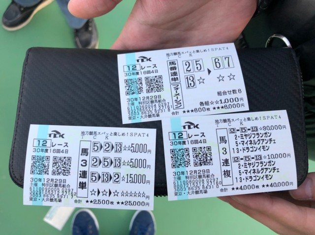 ガマンがきかずに余計なレースで5万円ほど使ったとはいえ、大勝利である。正直、ちょっとうらやましい。