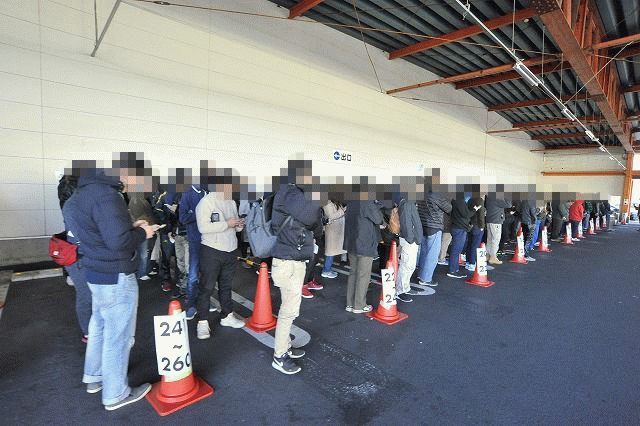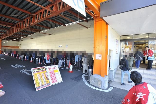 開店前には300人強の行列で、駐車スペースが埋められていた。