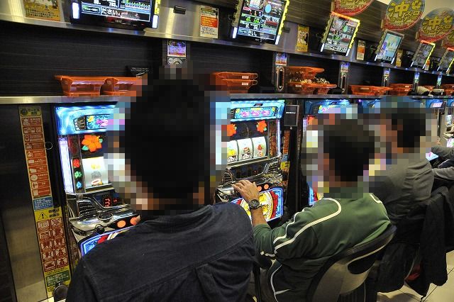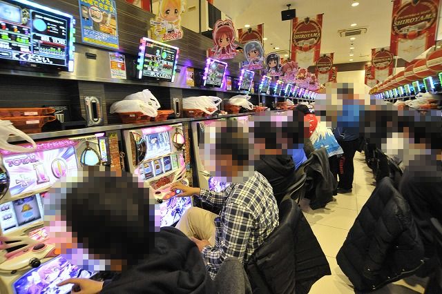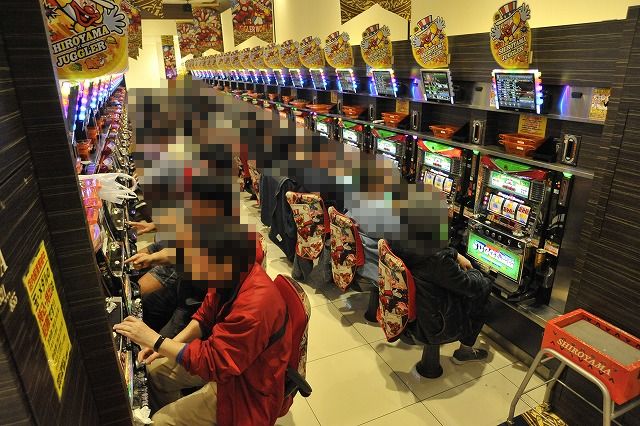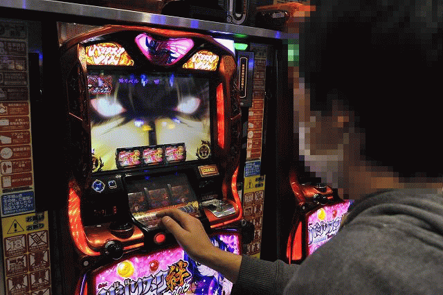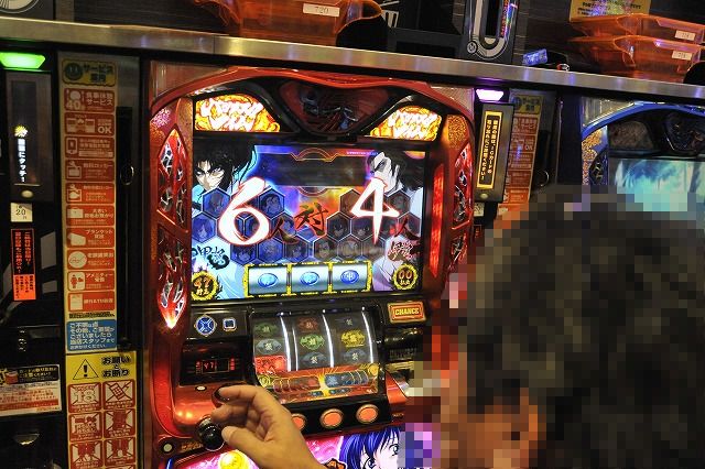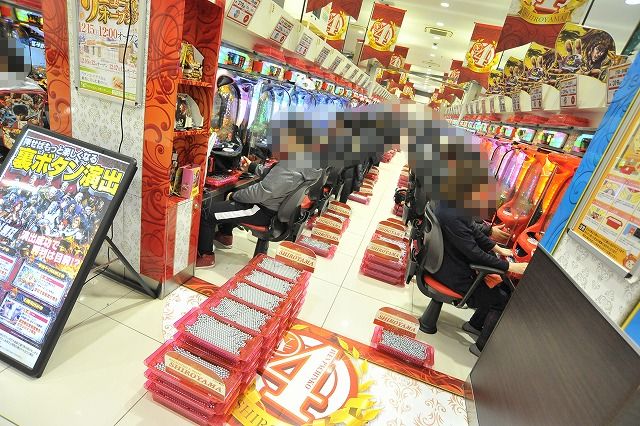 パチスロエリアにいる全員が、想いを込めてひたすらレバーを叩く!