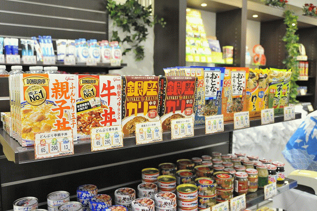 パチンコのキャラクターグッズから、あると嬉しい食料品や日用品が各種取り揃えられている。