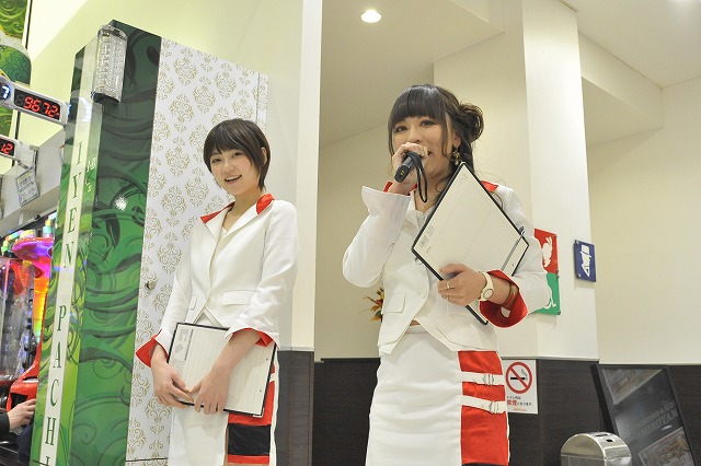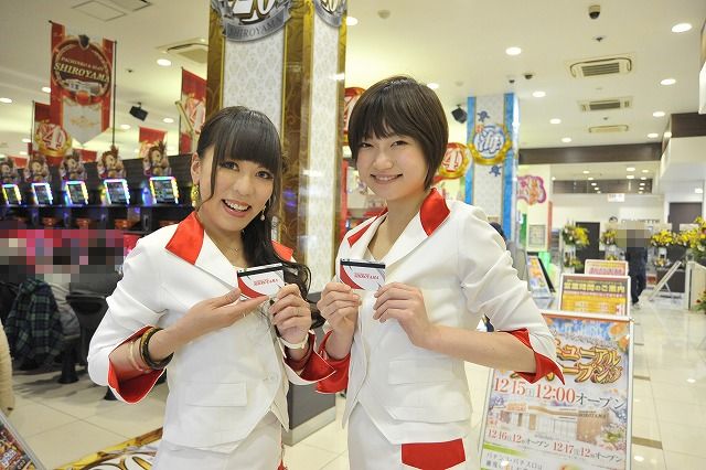 応援に駆け付けたコンパニオンの2人も、便利な会員カードをアピール♡