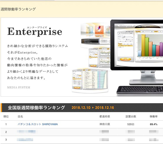 エンタープライズシステムによる調査にて、リニューアルオープン当日を含む期間内の稼働率で、パチンコ&スロットSHIROYAMAが堂々の全国一位という結果に‼