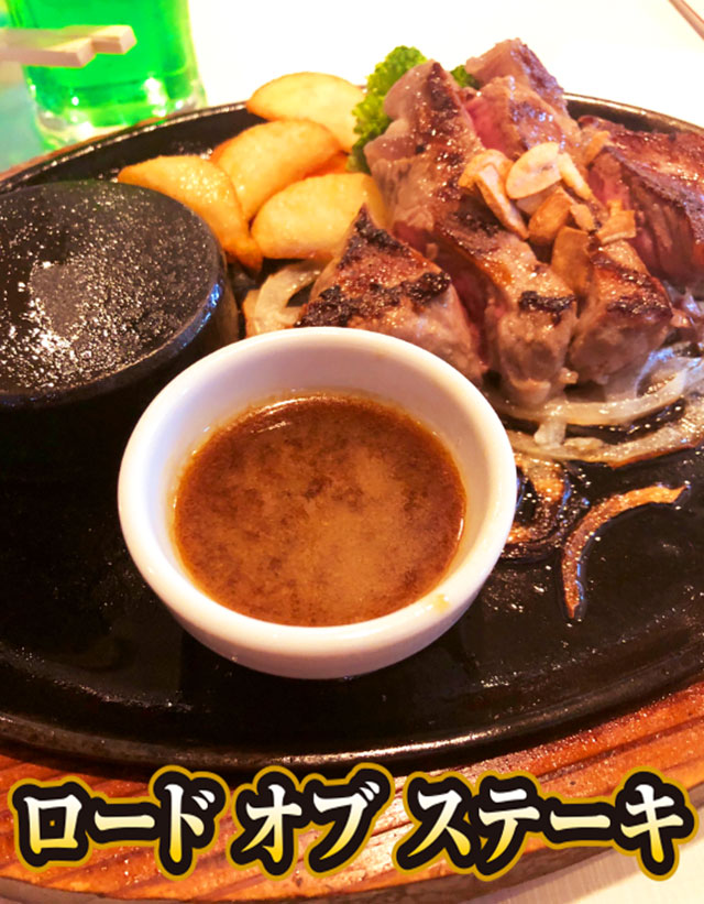 ステーキを完食し、テカテカ顔とテカテカ唇で