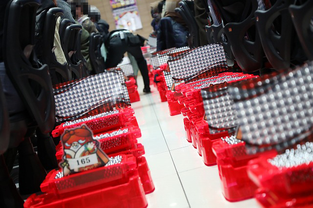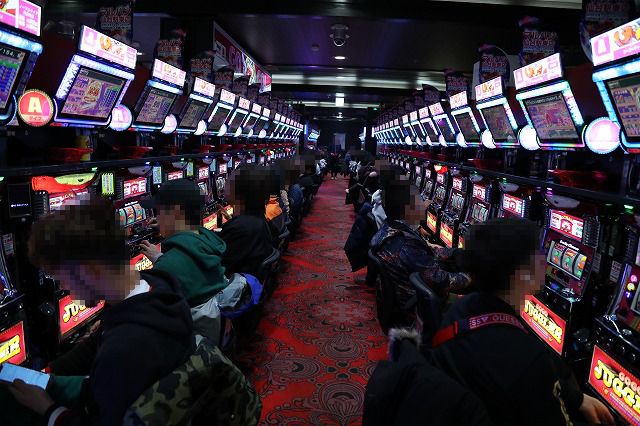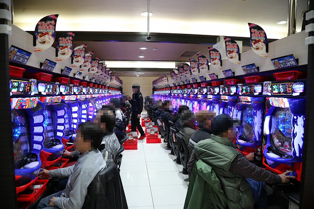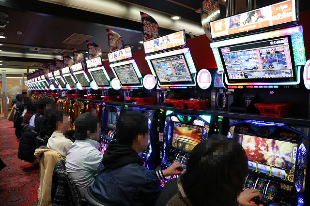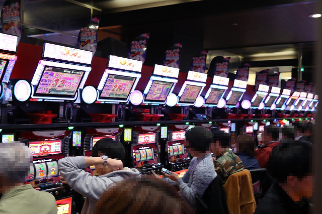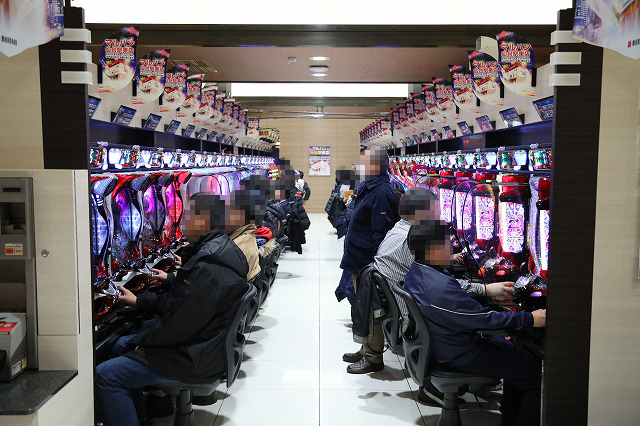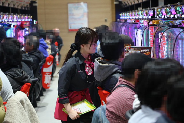 まずは押し寄せたファンにより、朝から一斉に稼働しだしたパチンコエリア。