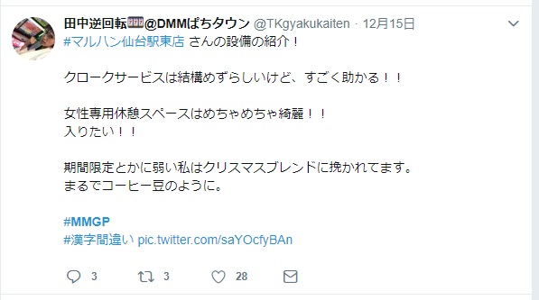 今回も田中が、#MMGPを付けてツイート&ファンにPR。