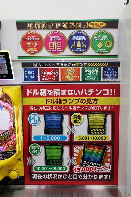 まず台と台の間隔が広く取られており、非常にリラックスしながら遊技を楽しむことができる。