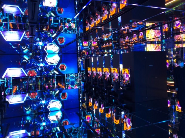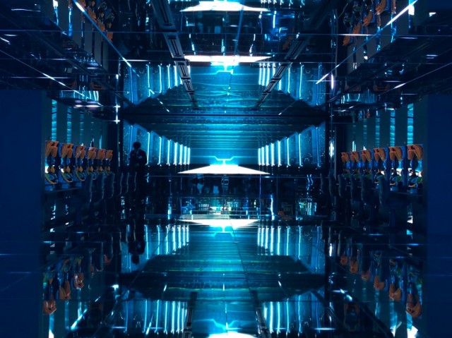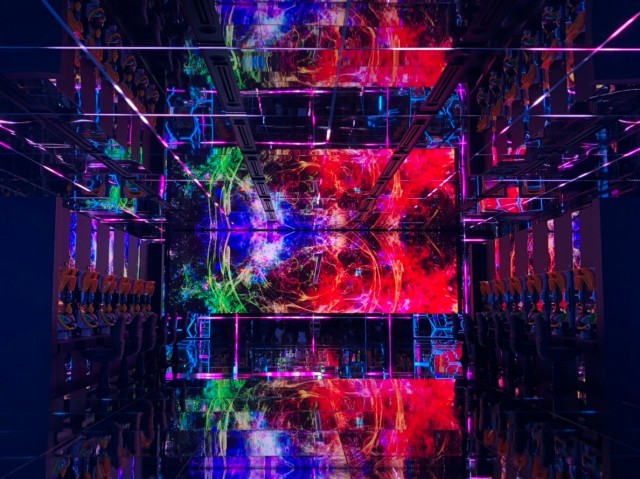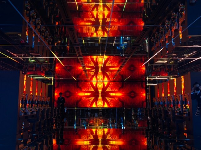 さらに継ぎ目に設置されたLEDと共に音、映像、光で五感を直接刺激する没入感を演出。