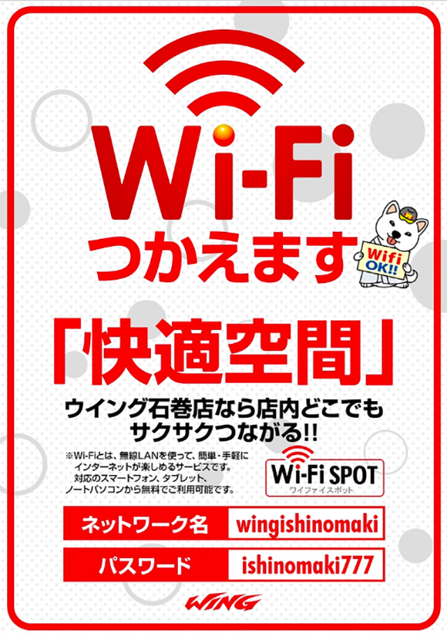 アツきバトルが繰り広げられるホール内にて、全てのファンが快適に過ごせるよう注力しているのが、ここ『ウイング石巻店』‼