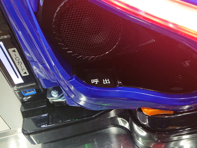 スマホを見ながら遊技する人も多いことから、上皿の右側には「スマホ置き場」が! トップパネルが邪魔になることを考慮して、呼び出しボタンも下皿横に設置されています。
