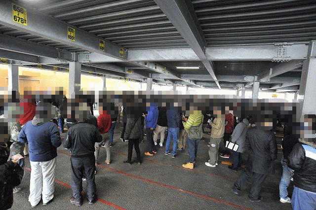 お目当ての台を取れるよう祈りつつ、入場抽選 に挑む!