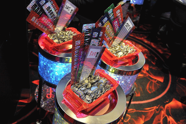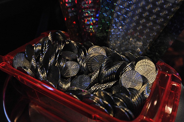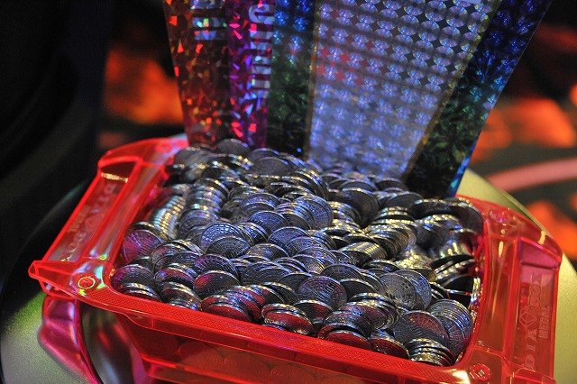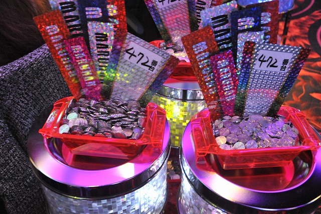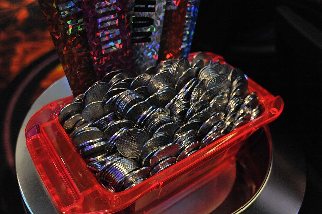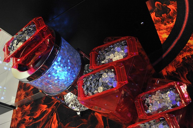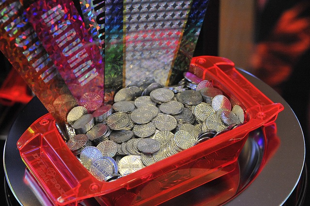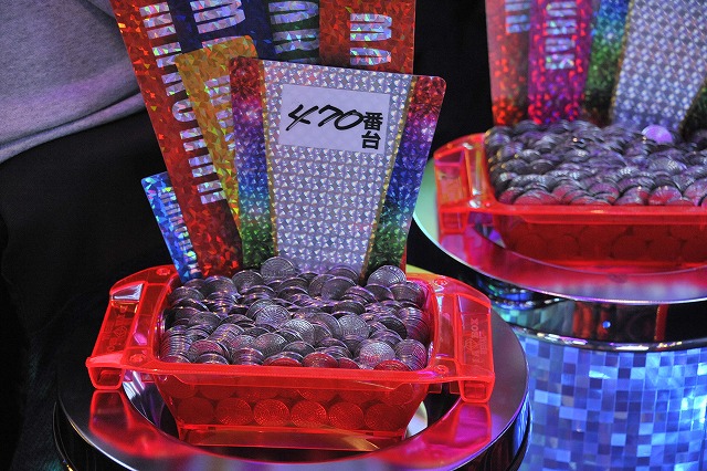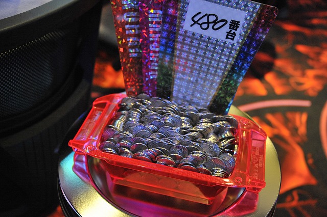 パチンコエリア同様、通路にドル箱がガンガン別積みされていく。