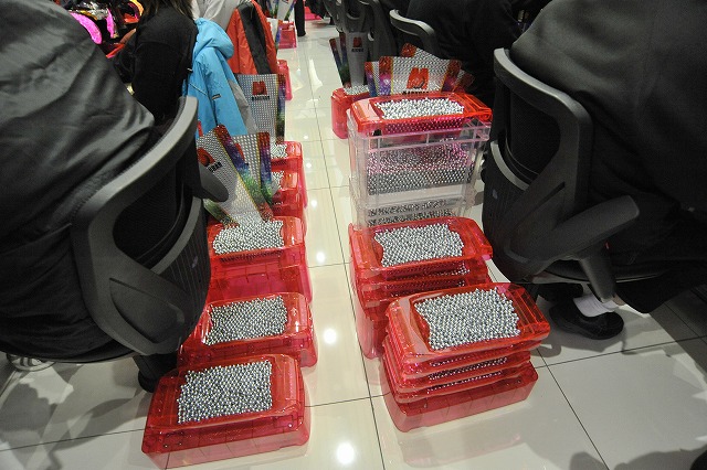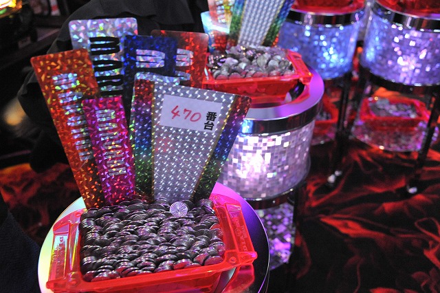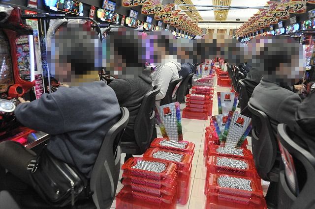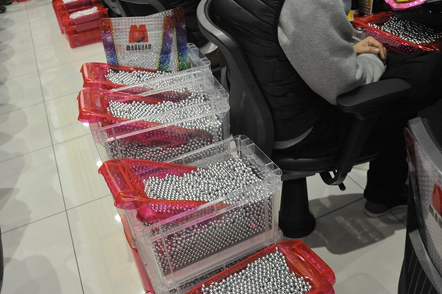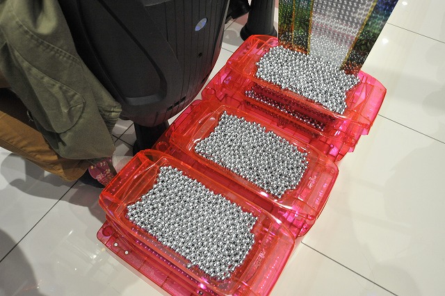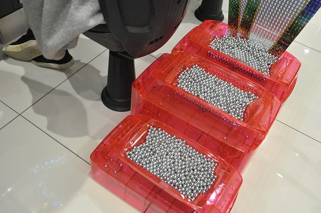 大当り多発、イコール玉箱が次々と通路に敷き詰められていく。