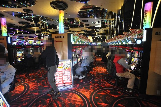 取材班はパチスロエリアへ移動し、島の状況をチェック。