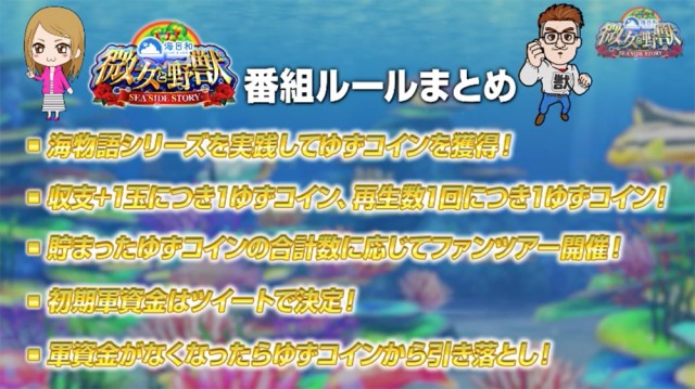 上の画像のようなルールに基づいて、せっせとゆずコインを貯めてファンツアー開催を目指す企画です。