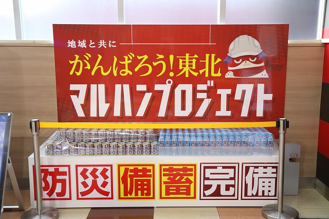 | 万が一に備えて“防災備蓄”に取り組んでいる。地域のファンを大切にしている「マルハン」ならでは。 |
