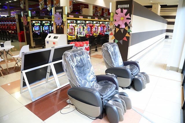 | 日頃の疲れを吹き飛ばしてくれる、マッサージチェアまで完備。遊技の合間に利用してみよう。 |