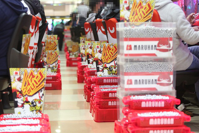 前述した機種以外にも、パチンコエリアを牽引する機種が好スタートを決め、すでに通路は玉箱が積まれ始めている!