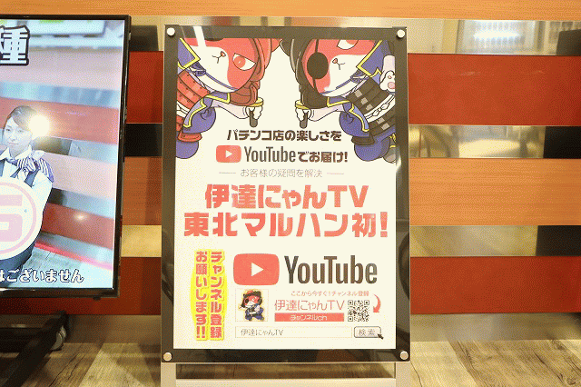 伊達にゃんTVにて行われた大会議にて誕生した、「マルハン仙台新港店」オリジナルのにゃんまるがファンをお出迎え。
