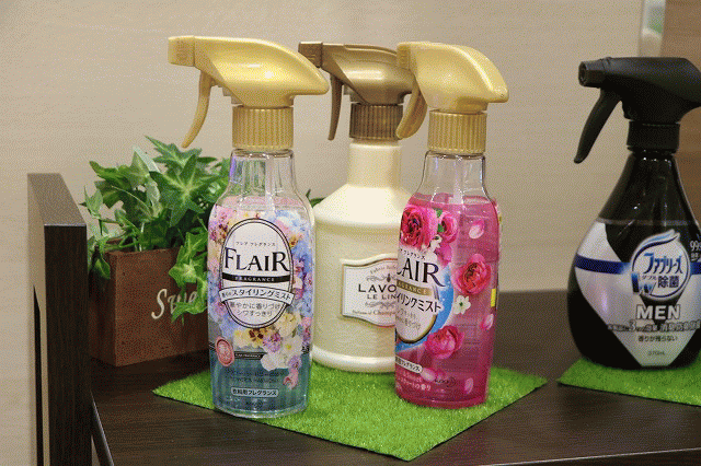 消臭スプレーは、複数種用意された中から好みのものをチョイスできるのが嬉しい。