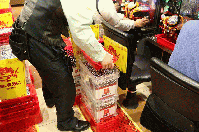 大当りに次ぐ大当りで、玉箱が通路を占拠している!!!!