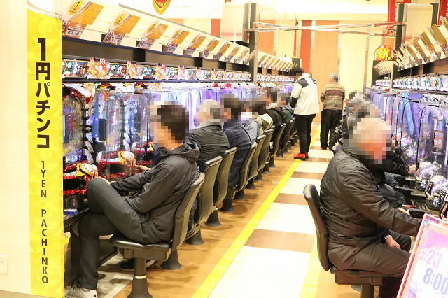 | 1円パチンコも朝から高稼働をキープ。お目当ての台を確保したいなら、朝一奪取が必須条件だ! |