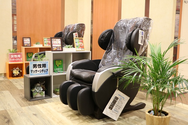 ゆったりくつろげる休憩スペースには、男性・女性専用のマッサージチェアも完備。
