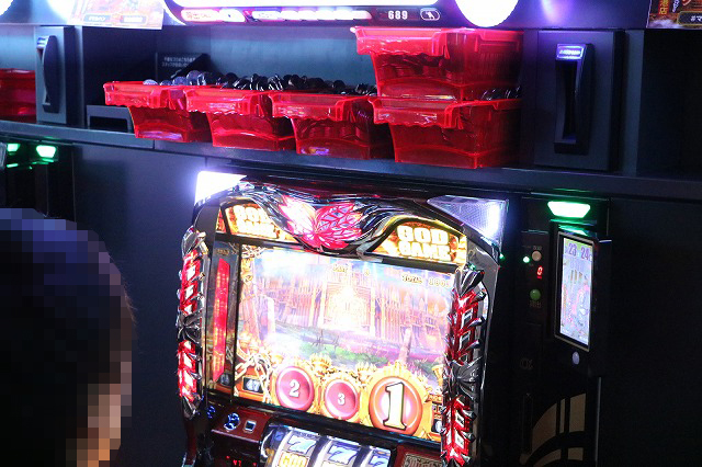 パチンコエリアで圧巻 の出玉を確認した後は、気になるパチスロエリアへ。