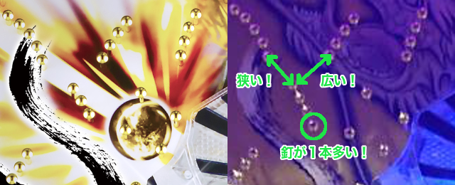 盤面が金色となって、役物の色も少し変わってますね。しかしそれ以外はパっと見、前2スペックと変わりないような?