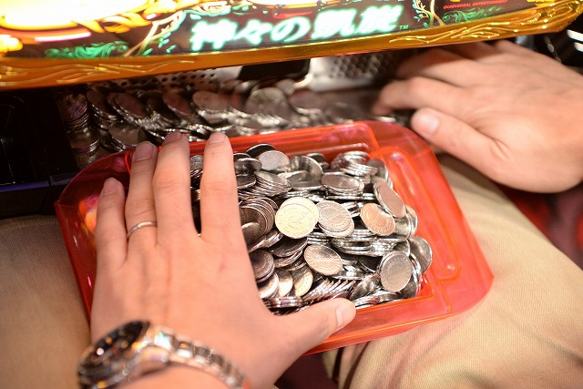 パチンコエリアでは、相変わらずあらゆる機種から大当りが止まらない!