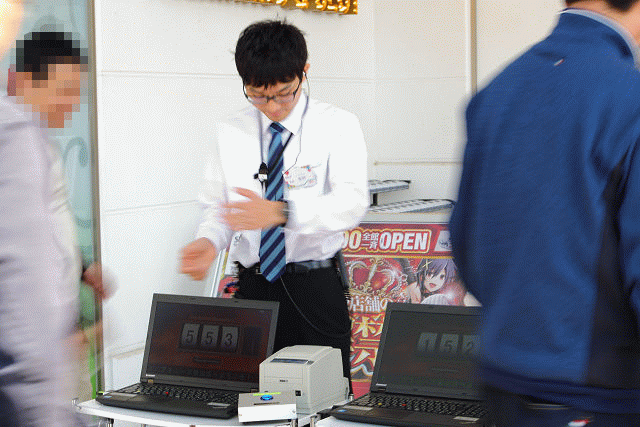 昼下がりには、出玉の匂いを嗅ぎ付けたのか、PRIDE取材のワカイコちゃんも来店。