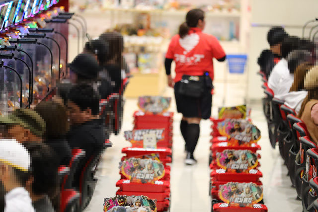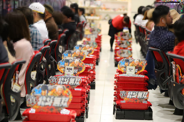 続々と『北斗無双』、『海物語』シリーズを中心に、レッドカーペットが敷き詰められ、空き台は休憩での離席のみ!?