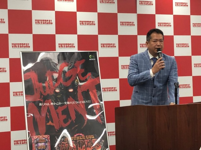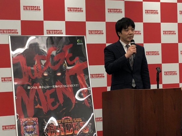 4月24日、東京ビッグサイトにほど近いユニバーサルエンターテインメント本社にて『Pアナザーゴッドハーデス ジャッジメント』の記者発表会が開催された。